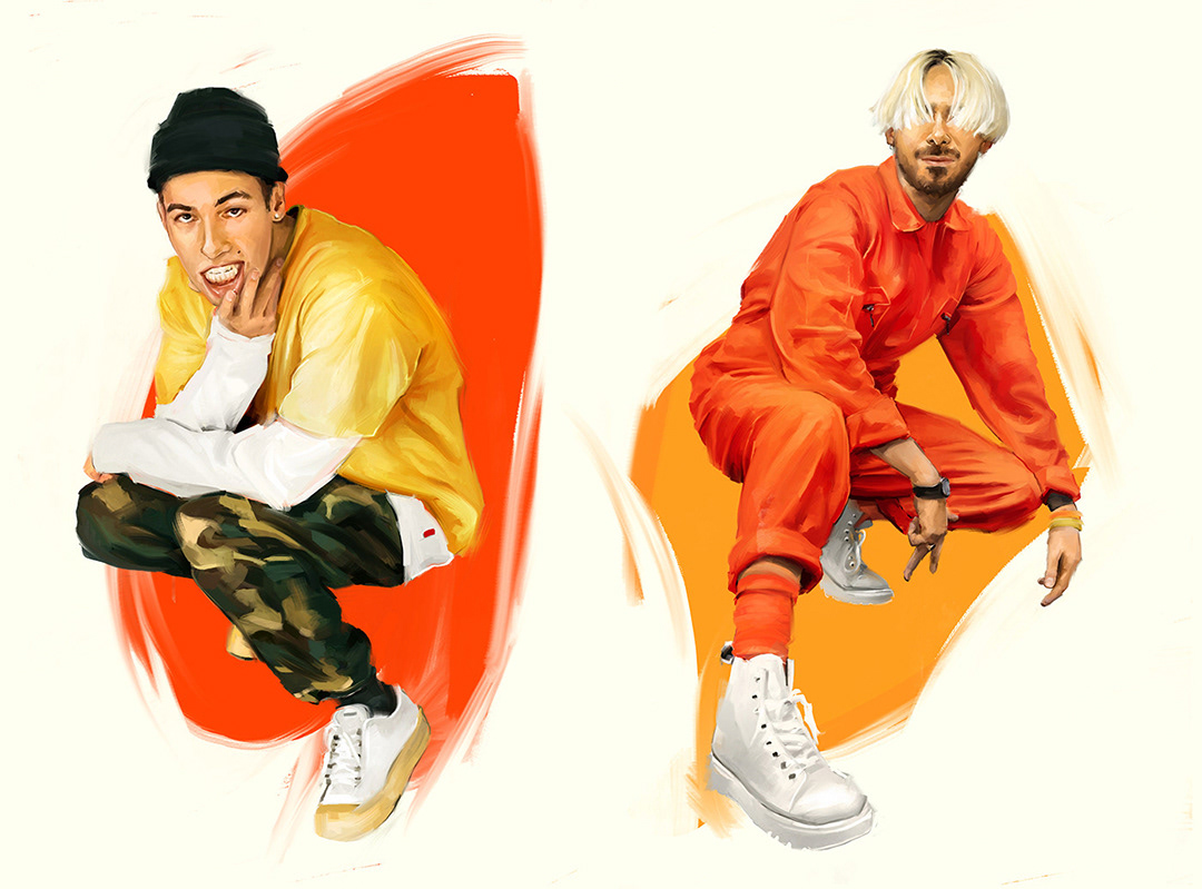 Portraits of the band's founding members, brothers Ewan & Callum Merrett, used for the album cover.